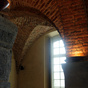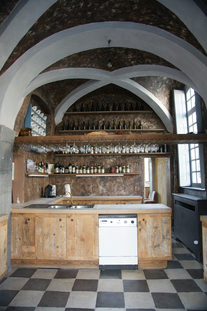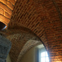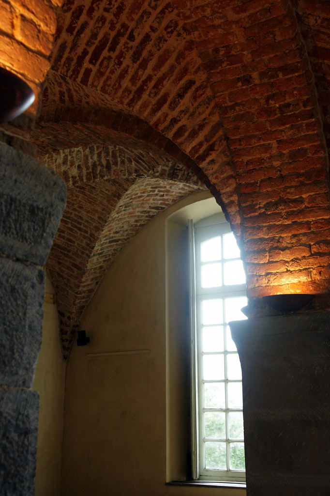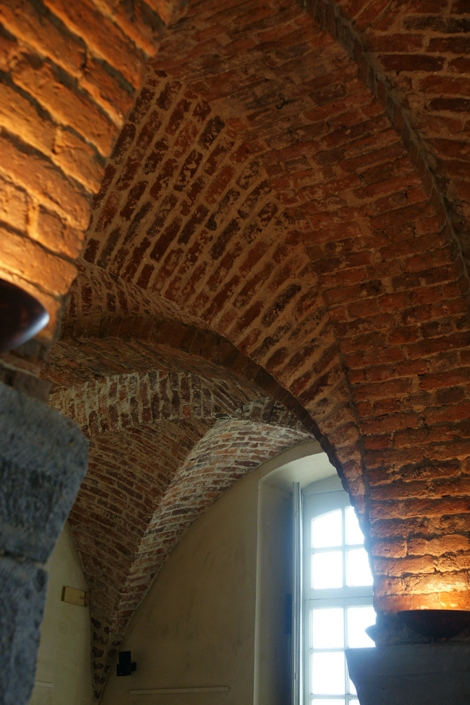 A few years ago, the vaulted ceiling was totally stripped off, revealing a beautiful work of red bricks now highlighted by indirect lighting.